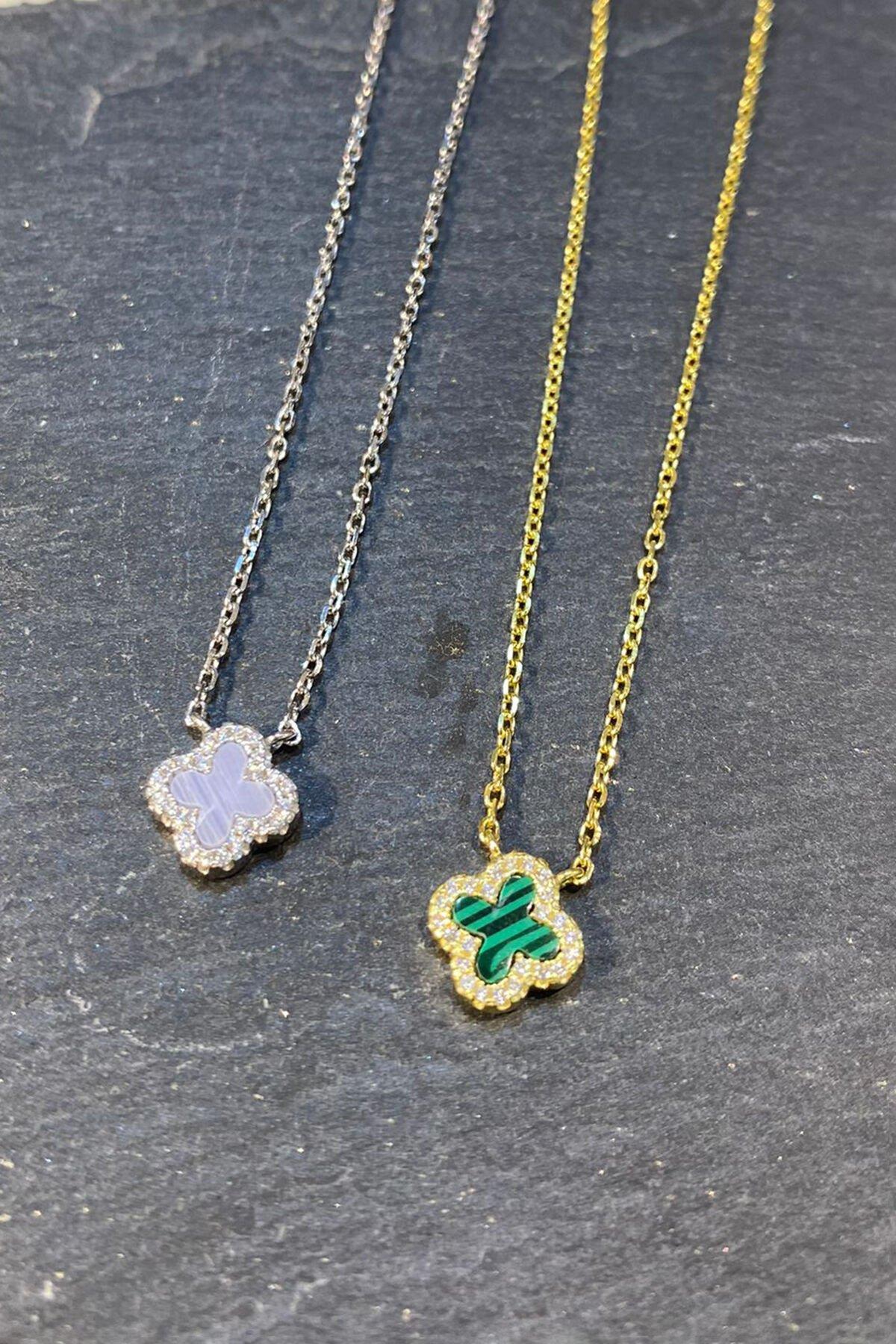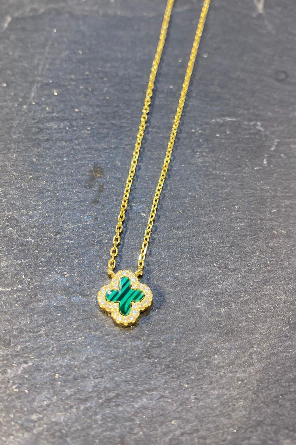 İthal Gümüş Yeşil Kolye By-6812